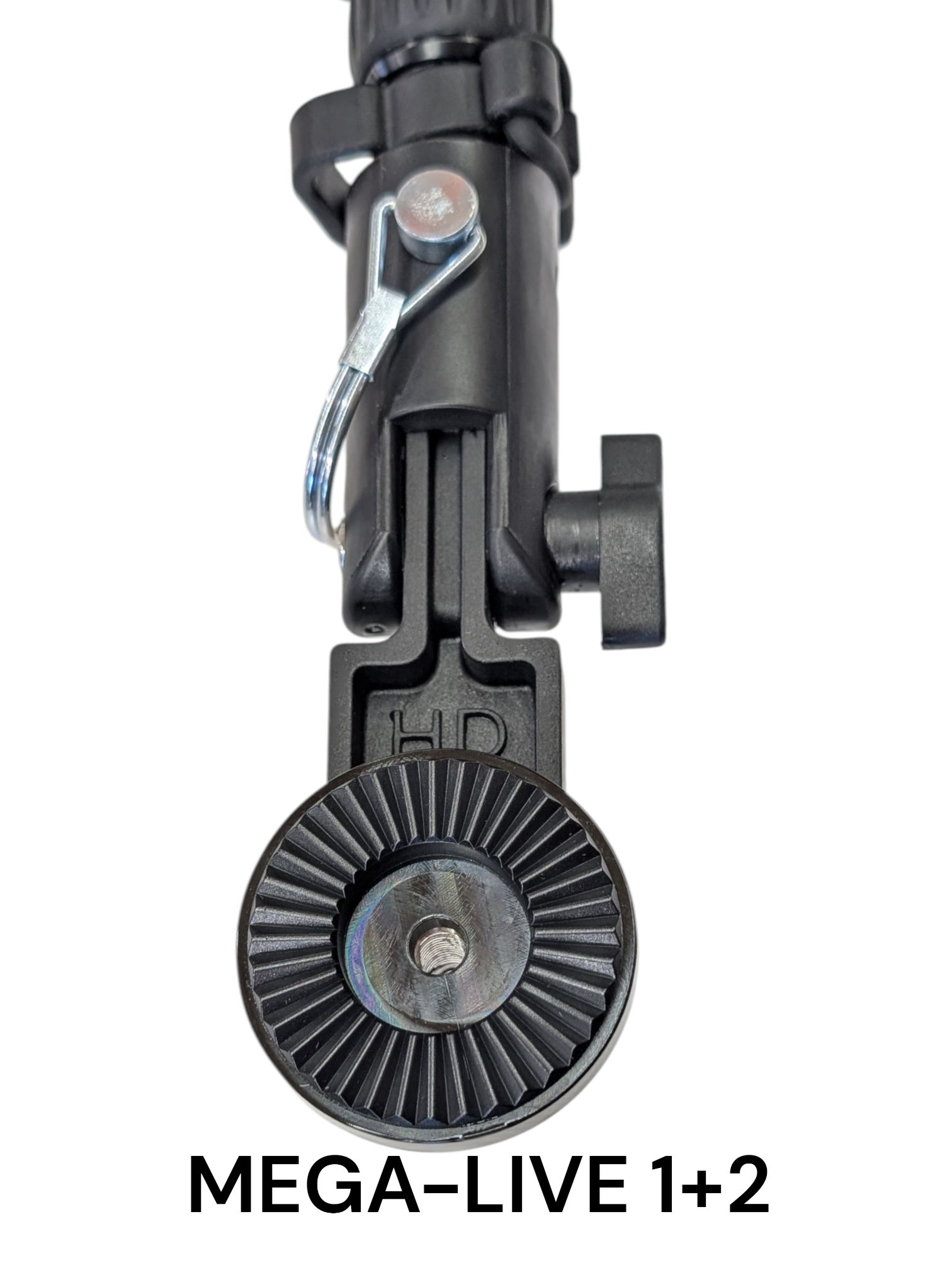 The HD Humminbird MEGA 1 and 2 connection kit includes a black single tooth adapter disk, 2 rubber washers, and Stainless steel 1/4-28 screw with Aluminum red anodized knob. Simple screw the knob set together, insert through the back of your HD Multi-Mount transducer mount (FITS ALL HD MULTIMOUNT TRANSDUCER MOUNTS), slide the black adapter disk in place and insert the disk tooth into the "Mega 1" or "Mega 2" slot. Now connect your MEGA transducer directly to the mount with no other factory mounting hardware in between.